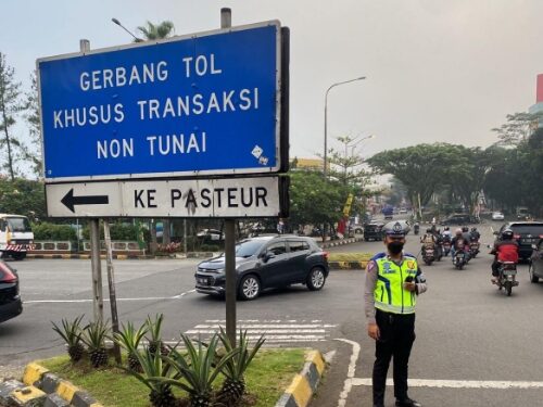 Sat Lantas Polres Cimahi Atur Kendaraan di Rest Area KM 125 Tol Cipularang
