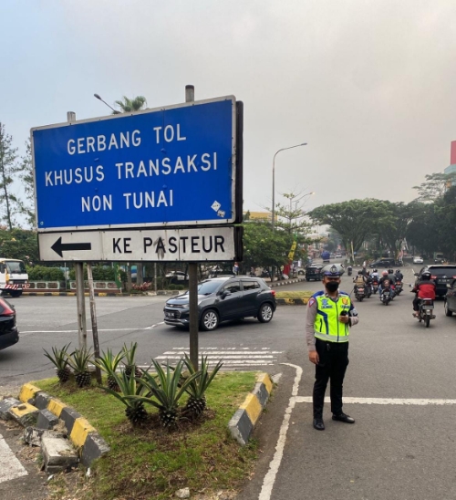 Sat Lantas Polres Cimahi Atur Kendaraan di Rest Area KM 125 Tol Cipularang