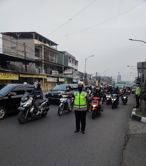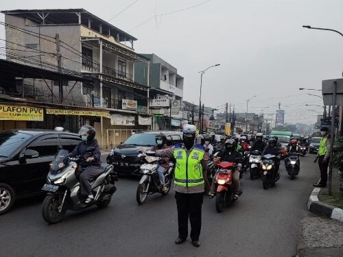 Sat Lantas Polres Cimahi Atur Lalu Lintas di Titik Rawan Kemacetan