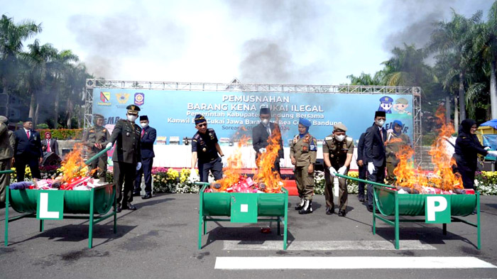 Pemusnahan rokok ilegal dan minuman mengandung etil alkohol ilegal itu dilakukan oleh Pjs. Bupati Bandung Dikky Achmad Sidik, Kepala Kantor Bea Cukai Bandung Budi Santoso, Kepala Satpol PP Kabupaten Bandung Moch Usman dan jajaran Satpol PP Bandung Raya, yaitu Satpol PP Kota Bandung dan Kota Cimahi serta jajaran TNI, Polri dan pihak lainnya.