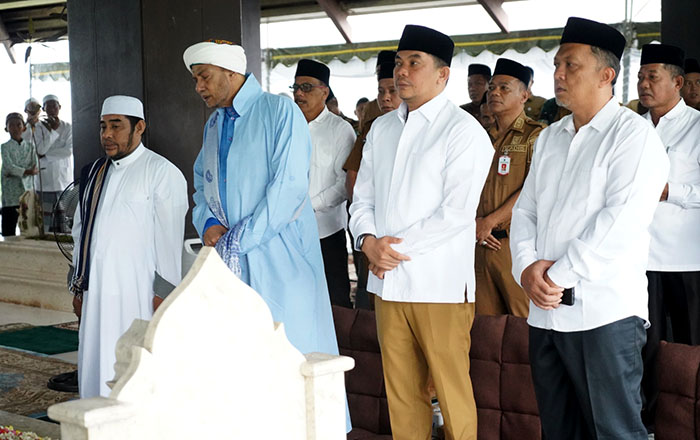 TANAH BUMBU, – Bupati Tanah Bumbu H. Andi Rudi Latif, A.Md.T., S.H., M.M., didampingi Pimpinan Majelis Syamsi Syumus Indonesia, Al Habib Musthofa Bin Abdullah Alaydrus melaksanakan ziarah makam.