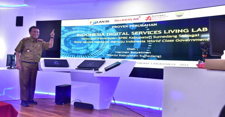 SUMEDANG,– Platform Indonesia Digital Services Living Lab yang digaungkan Kabupaten Sumedang dilatarbelakangi kunjungan 62 kabupaten/kota untuk studi banding terkait SPBE (Sistem Pemerintahan Berbasis Elektronik) di Kabupaten Sumedang.