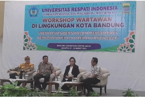 JAKARTA, — Untuk meningkatkan profesionalisme wartawan, dalam menghadapi pemilihan kepala daerah 2024, Sekretariat DPRD Kota Bandung bersama Lembaga Pengabdian Masyarakat Universitas Respati Indonesia (Urindo) Jakarta menggelar workshop di di Mercure Covention Center Ancol, Jakarta, Jumat (1/3/2024).