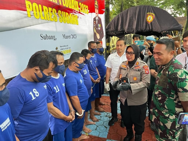 Subang,-Polres Subang Polda Jabar menyita ratusan knalpot racing (brong) dan ribuan botol minuman keras (miras) berbagai merk selama 10 hari pelaksanaan Operasi Pekat Lodaya (OPL) 2023 dari 13 Maret hingga 22 Maret 2023.