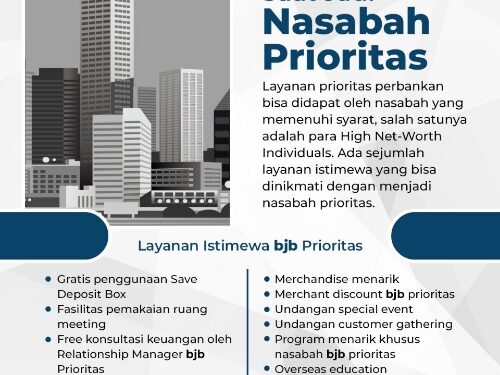 Salah satu bank yang memiliki layanan nasabah prioritas di Jawa Barat adalah bank bjb. Layanan prima milik salah satu Bank Pembangunan Daerah (BPD) terbesar di Indonesia ini menawarkan beragam keuntungan bagi nasabah prioritas mereka.