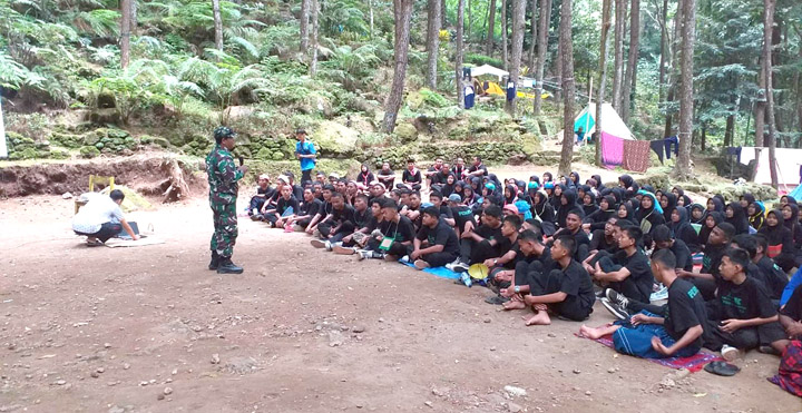 SUMEDANG,– Babinsa Koramil 1007/Conggeang Kodim 0610/Sumedang serka Surono memberikan latihan dasar kepemimpinan (LDK) kepada 150 orang siswa siswi yang berasal dari SMK PGRI 1 Gantar Kabupaten Indramayu yang dilaksanakan di Taman Wisata Curug Ciputrawangi Desa Narimbang Kecamatan Conggeang Kabupaten Sumedang, Jumat (30/9/2022).