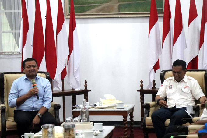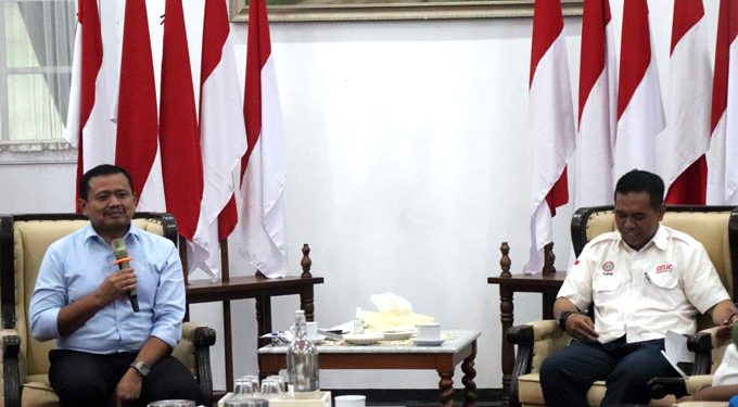 Tampak hadir dalam audensi tersebut, Kepala Kepala Dinas Tenaga Kerja dan Transmigrasi (Disnakertrans) Taufik Hidayat Slamet beserta jajaran. (hms/bon)