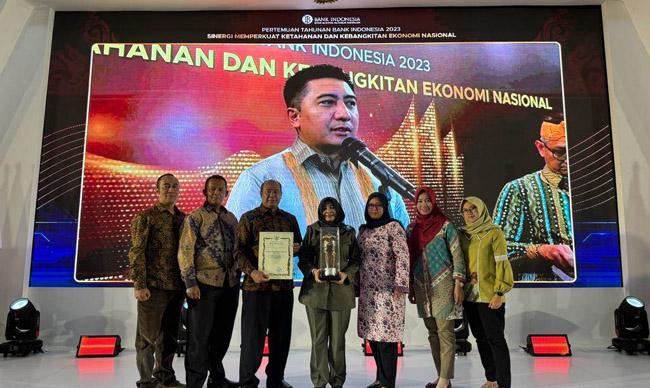 Penghargaan diterima langsung oleh Pj. Sekretaris Daerah Kabupaten Sumedang Hj. Tuti Ruswati pada Pertemuan Tahunan Bank Indonesia Tahun 2023 di Kantor Perwakilan Bank Indonesia Provinsi Jawa Barat, Jl. Braga No 108, Rabu (29/11/2023).