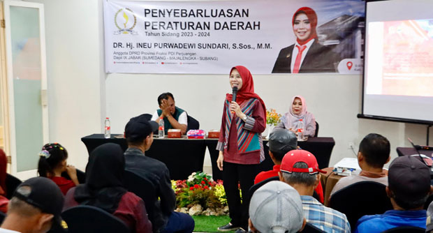 Hal tersebut disampaikan Wakil Ketua DPRD Provinsi Jawa Barat, Ineu Purwadewi Sundari, usai melakukan Penyebarluasan Peraturan Daerah (Perda) Tahun Anggaran 2023/2024, di Hotel Skyland City, Kabupaten Sumedang, Jumat (8/3/2024).