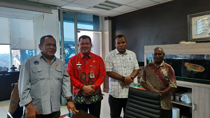 MAYBRAT, — Pj. Bupati Maybrat Bernhard Rondonuwu didampingi Asisten II dan Kalak BPBD Maybrat menemui Deputi Bidang Rehabilitasi dan Rekonstruksi, Jarwansah, di Gedung BNPB, Selasa (9/5/2023).