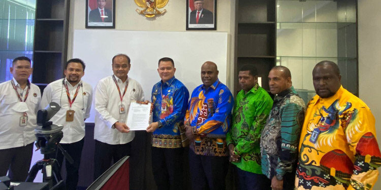 MAYBRAT,– Pj. Bupati Maybrat, Bernhard E. Rondonuwu bersama Ketua DPRD, sekretaris dewan, wakil ketua serta anggota Dewan Kabupaten Maybrat melakukan kunjungan kerja ke Kemenko PMK dan bertemu Asisten Deputi Mitigasi Bencana dan Konflik Sosial, Dr. Andre Notohamijoyo, Senin (16/1/2023).