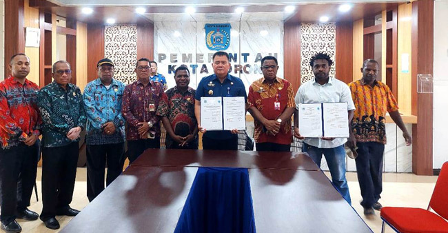 SORONG,– Penjabat Wali Kota Sorong, Dr. Bernhard Eduard Rondonuwu, S.Sos., M.Si., melaksanakan penandatanganan Memorandum of Understanding (MOU) terkait pengalihan petugas pengangkutan dan kebersihan sampah basah di Pasar Sentral Remu dan Pasar Modern Rufei, Kamis (24/10).