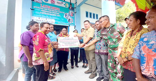 Dalam kesempatan tersebut, Pj Bupati Maybrat menyerahkan secara simbolis Dana Dapur Sehat Atasi Anak Stunting Maybrat (DASMA). Dana yang bersumber dari Otonomi Khusus (Otsus) Tahun Anggaran 2024 ini berjumlah 200 juta rupiah.