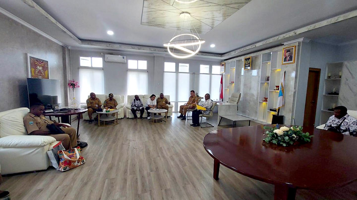 Ketua PGRI bersama beberapa kepala sekolah bertemu Pj Bupati Maybrat di ruang kerja. Dalam pertemuan itu, Ketua PGRI membahas soal anggaran ujian SD dan SMP yang belum tersalurkan dan membahas terkait sertifikasi duru.