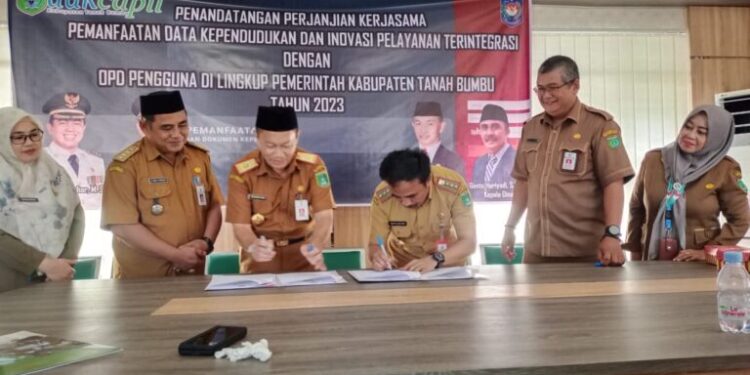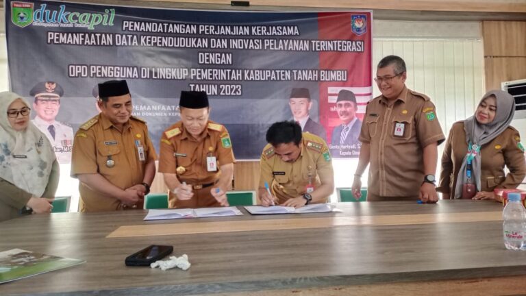 PKS digelar Selasa (30/5/2023) di ruang rapat Disdukcapil Tanbu antara Dinas Kependudukan dan Catatan Sipil (Disdukcapil), Badan Pendapatan Daerah (Bapenda) dan, Dinas Penanaman Modal dan Pelayanan Terpadu Satu Pintu ( DPMPTSP) setempat.