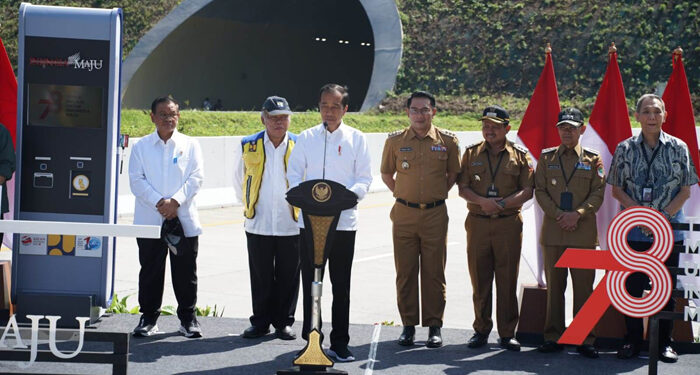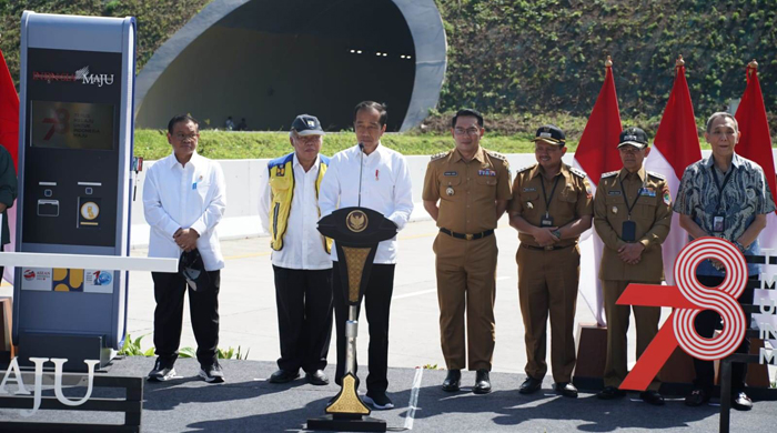 “Dan kita berada di terowongan kembar, twin tunnel, yang panjangnya 472 meter ini. Di seluruh Indonesia tidak ada. Jalan tol yang melewati dua terowongan seperti yang kita lihat pagi ini,” tambahnya.