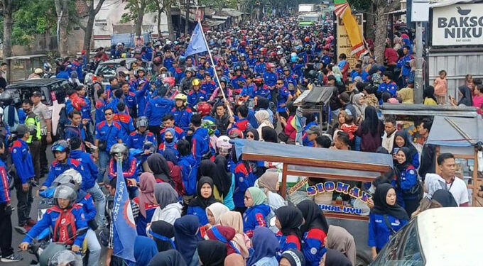 BANDUNG BARAT,– Terkait penetapan Upah Minimum Kota/Kabupaten (UMK) tahun 2024, para buruh di Jawa Barat seperti Kabupaten Bandung Barat (KBB), Kabupaten Cianjur, Kota Cimahi, Kabupaten Bandung, Kabupaten Majalengka, Kabupaten Cirebon dan lainnya melakukan aksi unjuk rasa, Rabu (29/11/2023).