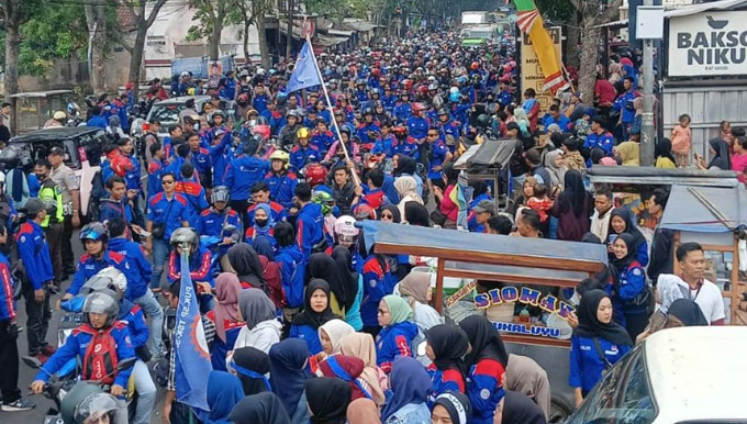 Berdasarkan pantauan media ini di KBB, para buruh melakukan long march di jalanan. Sementara berdasarkan informasi yang diperoleh dari buruh, mereka akan menuju ke Gedung Sate, Kantor Gubernur Jabar.