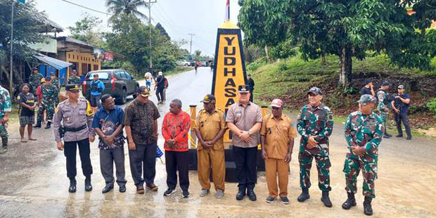 MAYBRAT,— Pj Bupati Maybrat, Dr. Bernhard Eduard Rondonuwu, S.Sos, M.Si., meresmikan Tugu Satgas Yonif 133/Yudha Sakti di Susumuk, ditandakan dengan pengguntingan pita bersama, Sabtu 3 Agustus 2024.