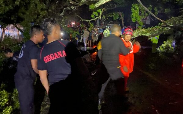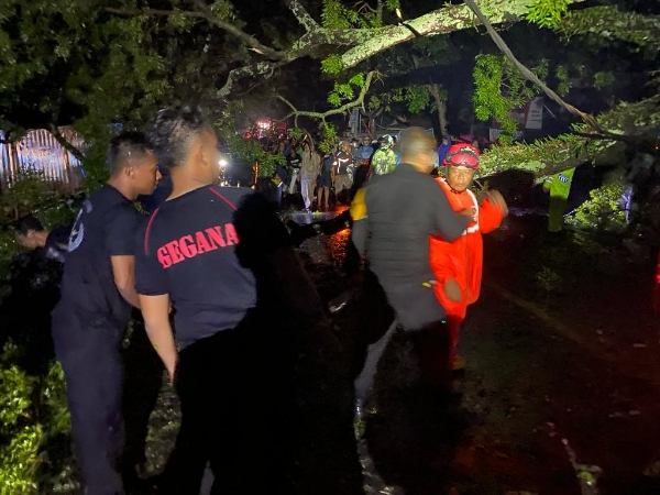 Cianjur – hujan deras disertai angin kencang menyebabkan pohon tumbang di ruas jalan Cianjur – Sukabumi tepatnya di desa Rancagoong Cianjur (4/3/2023)