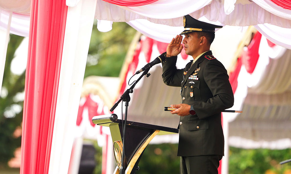 Inspektur upacara Letkol Inf Zierda Aulia Salam memimpin jalannya kegiatan dan menyampaikan amanat Bupati Tanah Bumbu, H. Andi Rudi Latif, A.Md.T., S.H., M.M., kepada seluruh peserta upacara.