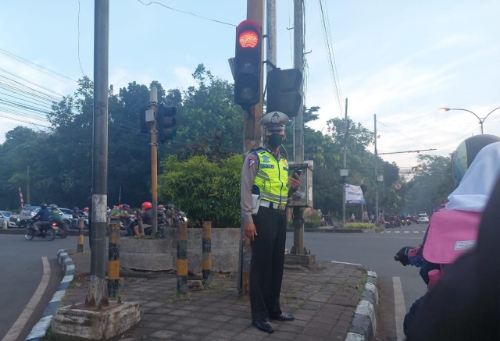 Giat pelayanan masyarakat pagi yang di laksanakan berupa penjagaan dan pengaturan lalulintas di titik lokasi jalan yang berpotensi menimbulkan rawan kemacetan pagi hari di wilayah hukum Polsek Regol, Selasa (16/8/2022 ).