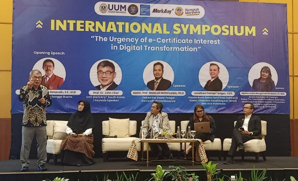 Kegiatan simposium internasional yang digelar di Prime Park Hotel, Bandung, pada Kamis (5/12/2024) ini membahas dan mendiskusikan sejauh mana kebutuhan hingga tantangan dalam penggunaan sertifikat elektronik atau e-sertifikat di tengah perkembangan transformasi digital saat ini.