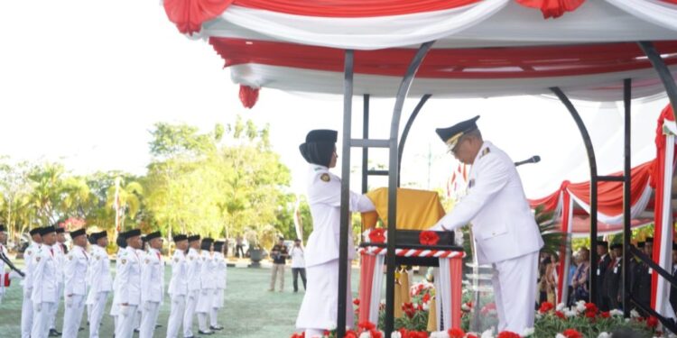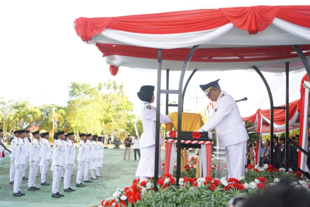 Wabup Muh Rusli Sukses Jadi Inspektur Upacara Penurunan Bendera Merah Putih dalam rangka peringatan HUT RI Ke-78.