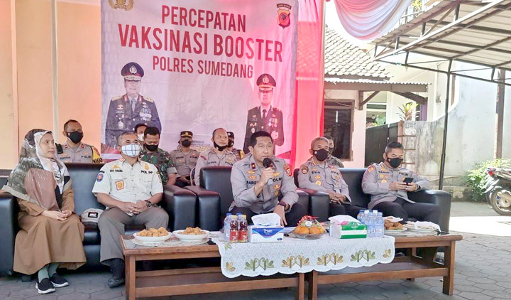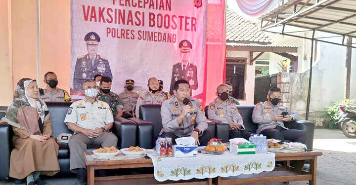 Kapolres Sumedang, AKBP Indra Setiawan yang ditemui dilokasi menjelaskan bahwa kunjungan Wakapolda Jabar bertujuan untuk monitoring vaksinasi sebagai upaya pemenuhan target vaksin khususnya booster di wilayah Jawa Barat.