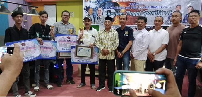 Tanah Bumbu — Wakil Bupati Tanah Bumbu, H. Rusli,S.Sos resmi menutup turnamen biliar Persatuan Wartawan Indonesia (PWI) Tanbu 2023 di Gedung Unix 888 Batulicin, Sabtu (12/8/2023).