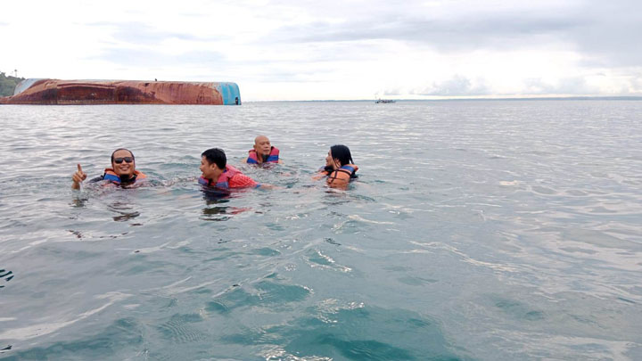 Selain hanya berperahu dan berenang, wartawan dan jajaran di Prokopim Setda Sumedang juga melihat ikan-ikan saat snorkling atau selam permukaan.