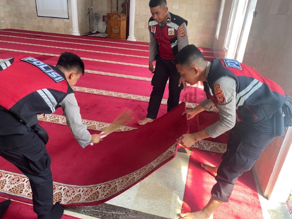 Kasat Samapta Polres Sukabumi Kota Polda Jabar AKP Agus Suhendar menyampaikan kegiatan bersih-bersih mesjid yang dilakukannya bersama-sama dengan personelnya tersebut merupakan salah satu kegiatan rutin mingguan dalam rangka program Jum’at Berkah Polres Sukabumi Kota.